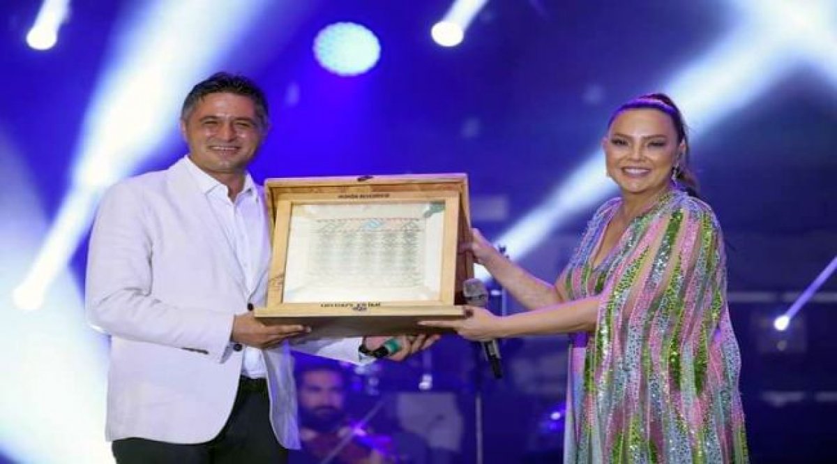 Sesiyle sahnede devleşen ünlü sanatçı Ebru Gündeş Aliağa Belediye Başkanı Serkan Acar’a Aliağa’da