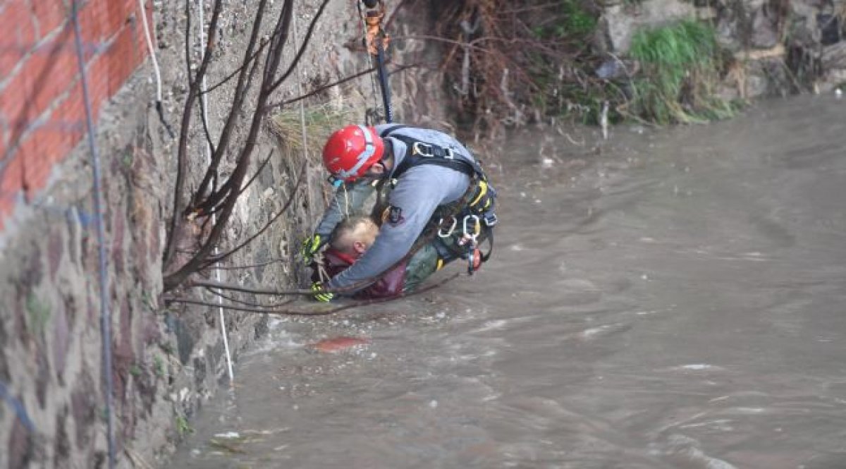 İzmir’de etkili olan sağanak yağış sırasında, 50–55 yaşlarındaki bir erkek Yeşildere’de dere içinde uyuduğu sırada yükselen sulara kapıldı. Yaklaşık 20 metre sürüklenen kişiyi tutunduğu noktada, ihbar üzerine olay yerine gelen İzmir Büyükşehir Belediyesi İtfaiye Dairesi Başkanlığı ekipleri kurtardı. Su seviyesinin yaklaşık 2 metreye ulaştığı dereye vinç yardımıyla inen ekipler vatandaşı bulunduğu noktadan kurtardı. Sedye ile yaklaşık 10 metrelik duvardan çıkarılan yurttaş, sağlık ekiplerine teslim edilerek hastaneye sevk edildi.